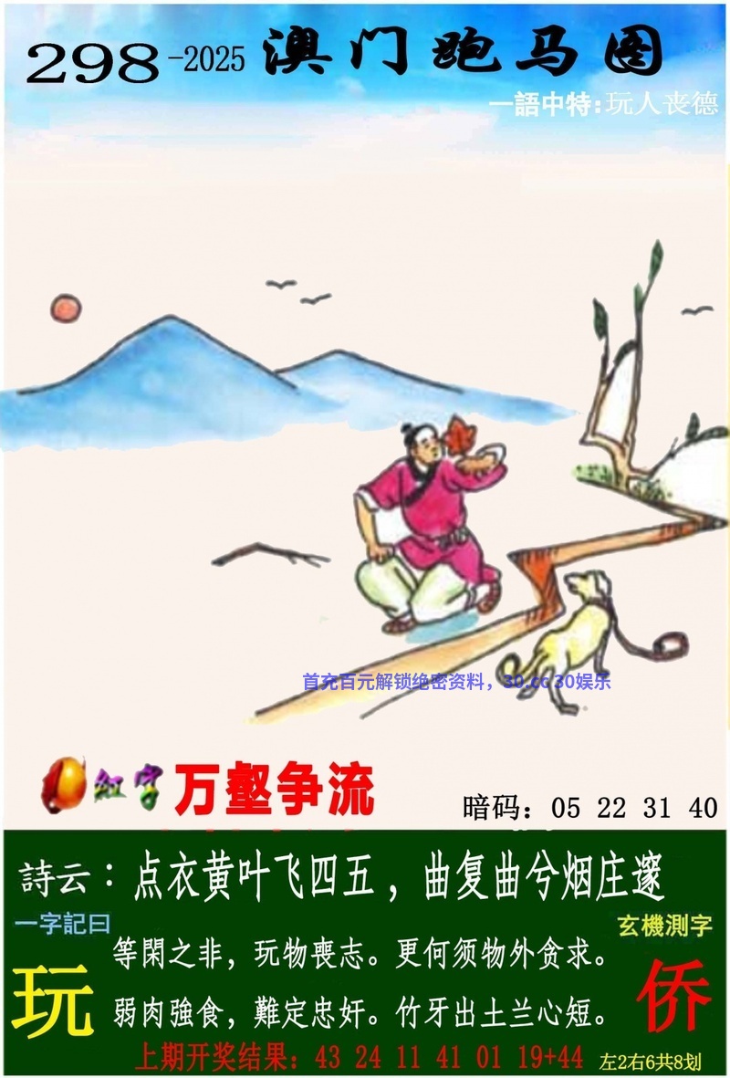 291期:家野两肖家禽+蛇猴】开:狗44中